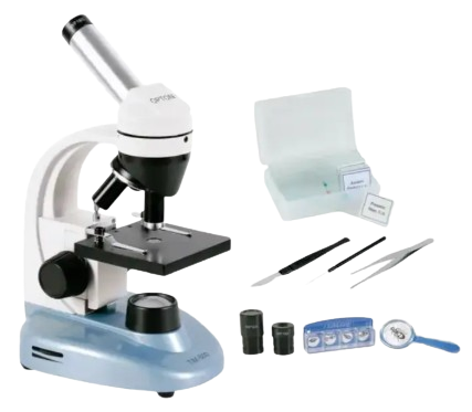 Microscópio Biológico Monocular com Ampliação de 40x até 640x e Iluminação a LED. Equipamento ideal para escolas de ensino fundamental, com ótimo desempenho e