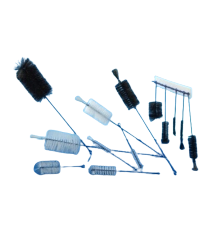 Escovas fabricadas em crina, indicadas para a limpeza de vidrarias laboratoriais e outros recipientes, especialmente provetas .
